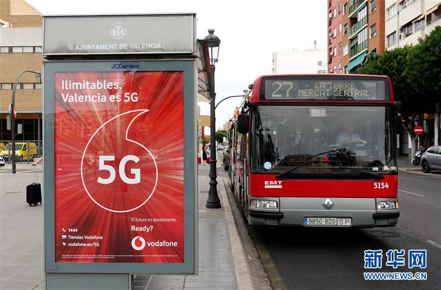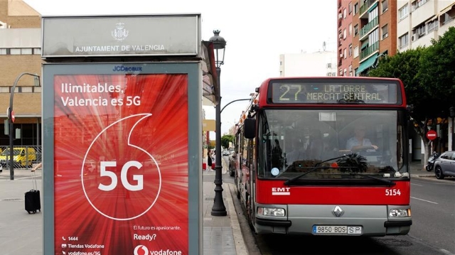 Photo prise le 17 juin à un arrêt d’autobus à Valence, en Espagne, montrant une publicité de l’opérateur téléphonique Vodafone, qui a récemment ouvert le premier réseau mobile commercial 5G du pays avec Huawei en tant que fournisseur principal.
