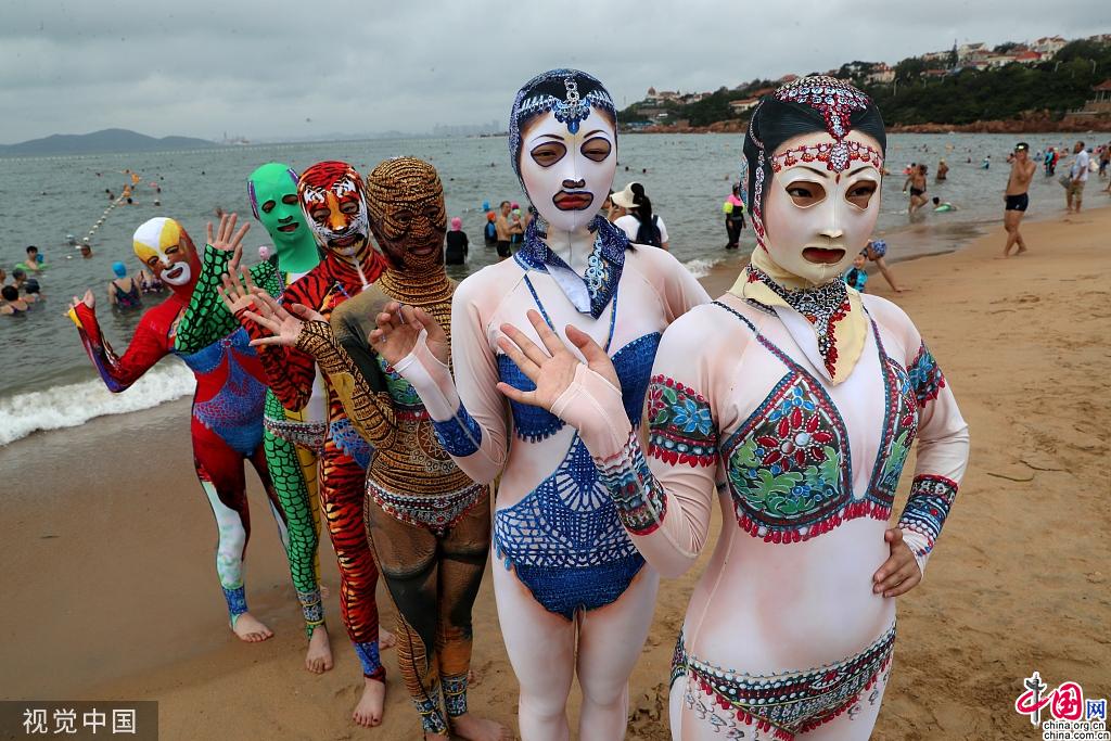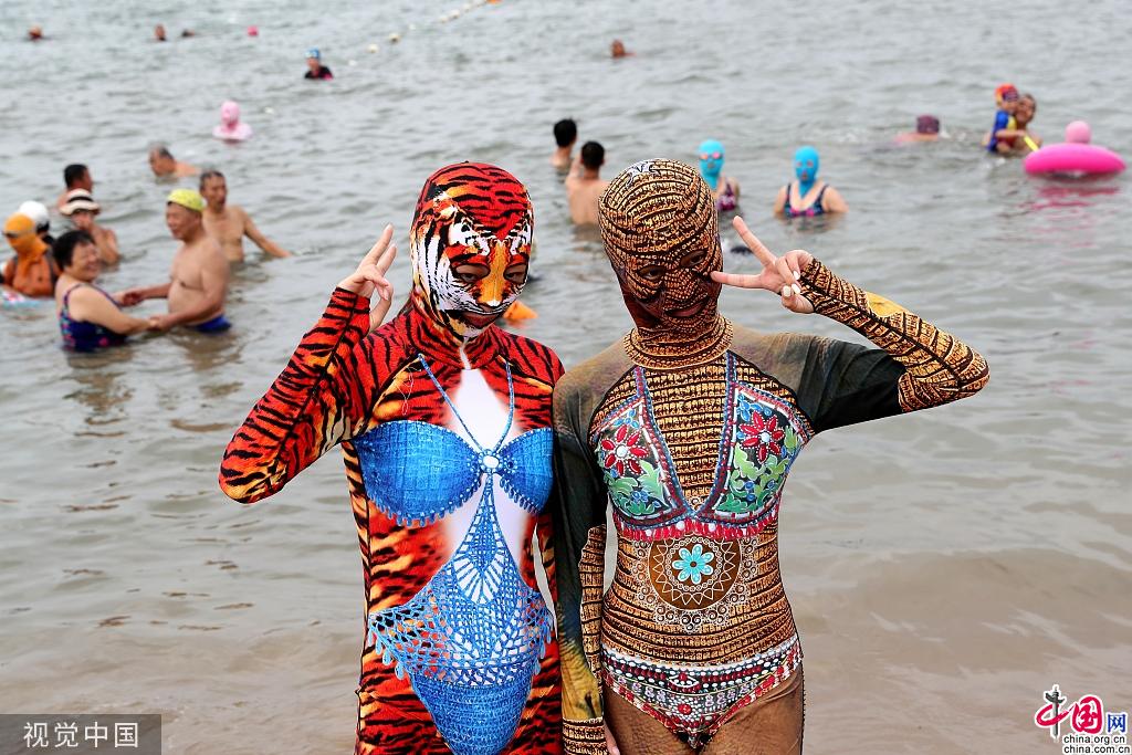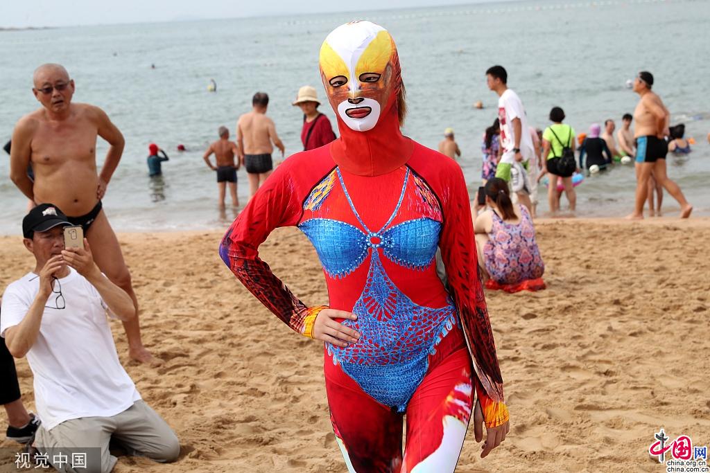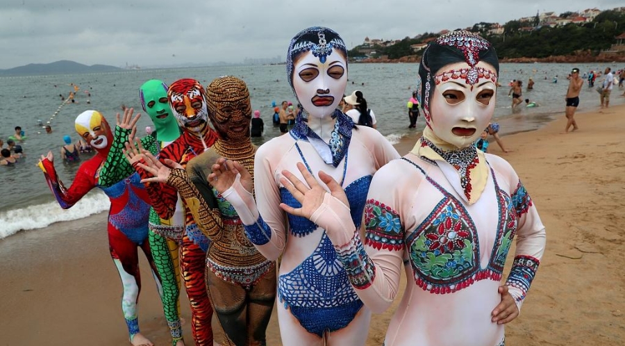 Le 5 août, de nouveaux face-kini ont fait leur apparition sur la plage numéro 1 à Qingdao. Les couleurs saisissantes et les dessins extraordinaires de ces « accessoires de mode » ont fortement attiré l’attention. (Photos : VCG)