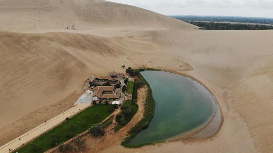 L’oasis du Croissant de lune de Dunhuang, un site emblématique de la province du Gansu, a vu son niveau d'eau remonter après avoir été menacée par la sécheresse. En août, la célèbre oasis offre une vue féerique, attirant de nombreux visiteurs provenant des quatre coins de la Chine.