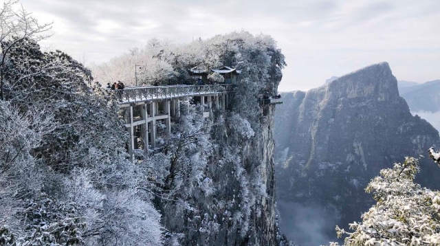 Le 19 décembre, la forêt nationale du mont Tianmen, située à Zhangjiajie, dans la province du Hunan, a connu des chutes de neige, après lesquelles le site a offert à la vue des visiteurs des paysages féeriques.
