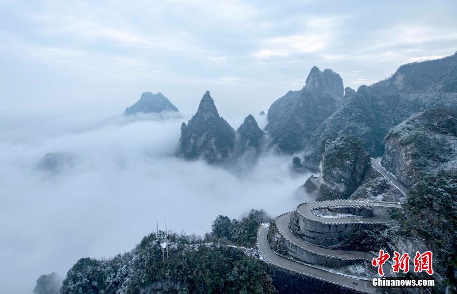 - Le 19 décembre, la forêt nationale du mont Tianmen, située à Zhangjiajie, dans la province du Hunan, a connu des chutes de neige, après lesquelles le site a offert à la vue des visiteurs des paysages féeriques.