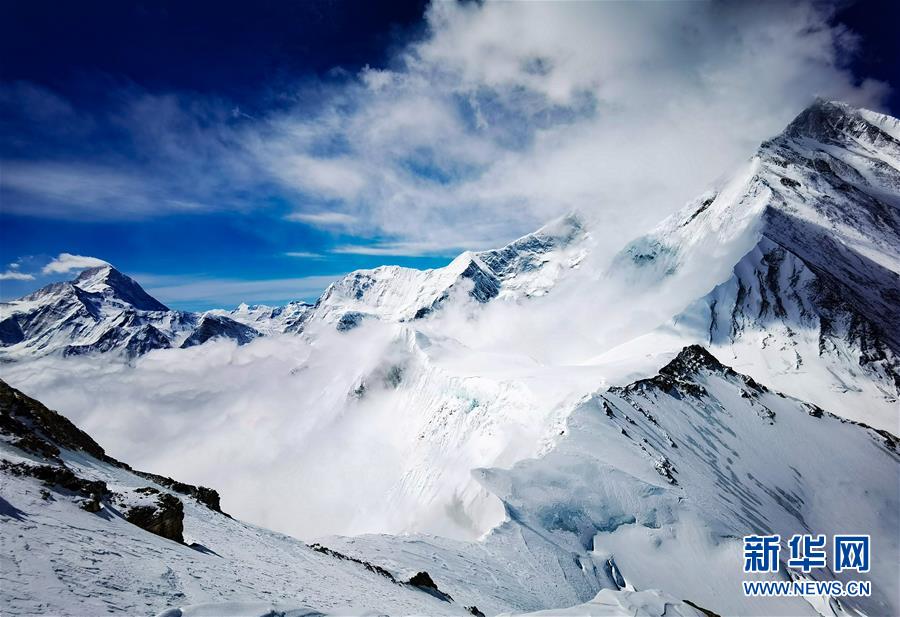 Photos prises le 12 mai, montrant une vue magnifique du mont Everest (Qomolangma en tibétain) au-dessus de 7028 mètres d’altitude. (Photo : Lhapa/Xinhua)