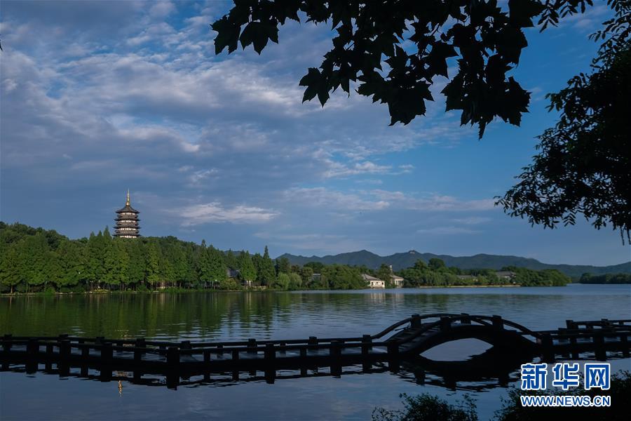 Photo prise le 7 juillet, montrant la floraison des lotus au lac de l'Ouest, à Hangzhou, chef-lieu de la province chinoise du Zhejiang. Après des chutes de pluie, le lac de l'Ouest offre à la vue des visiteurs un magnifique paysage sous un beau soleil.