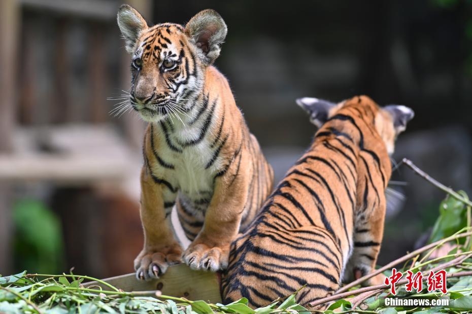 Le 28 septembre, les tigres jumeaux de Chine méridionale du zoo Changlong de Guangzhou, dans la province chinoise du Guangdong (sud), ont attiré l’attention de nombreux visiteurs. Les deux bébés sont nés le 7 juin 2020. (Photos : Chen Jimin/Chinanews)