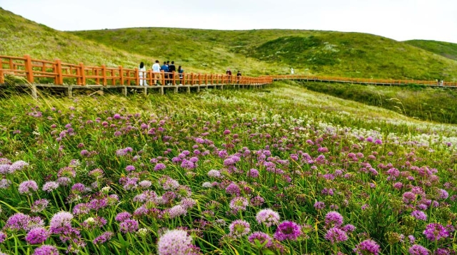 Photo prise le 3 septembre, montrant le site touristique des fleurs de ciboulette du xian de Hezhang, dans la province du Guizhou (sud-ouest). Grâce à des politiques promotionnelles du tourisme et à l'amélioration des installations de services touristiques, le xian de Hezhang est progressivement devenu un endroit populaire pour les touristes au cours de ces dernières années. De janvier à août 2021, Hezhang a reçu un total de 4,34 millions de touristes. (Photos : Yang Wenbin/Xinhua)