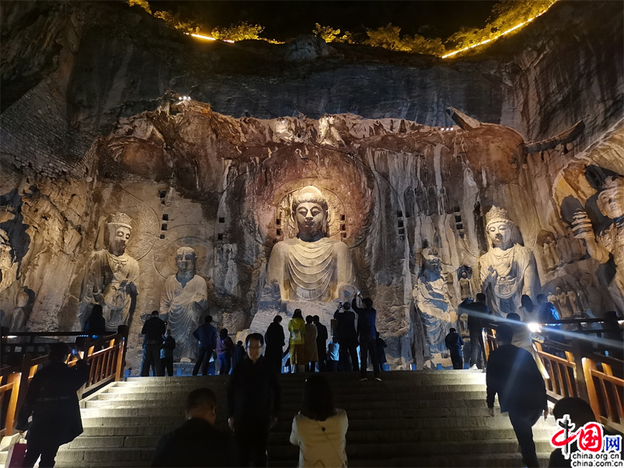 Le soir du 14 octobre, de nombreux touristes sont venus profiter d'une visite de nuit sur le site touristique des grottes de Longmen, situé à Luoyang, dans la province chinoise du Henan (centre). (Photos : Liu Peng/VCG)