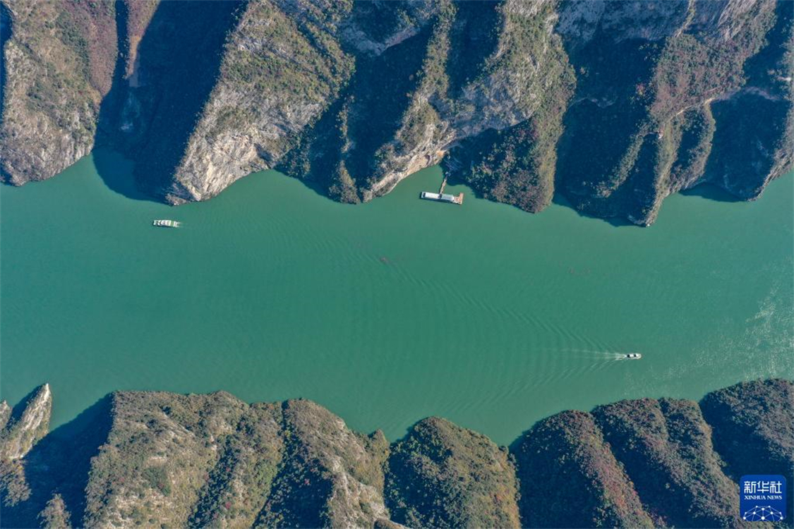 Photo prise le 18 novembre, montrant une vue aérienne de la gorge de Wuxia, l'une des trois gorges du fleuve Yangtsé, au xian de Wushan de la municipalité de Chongqing (sud-ouest).