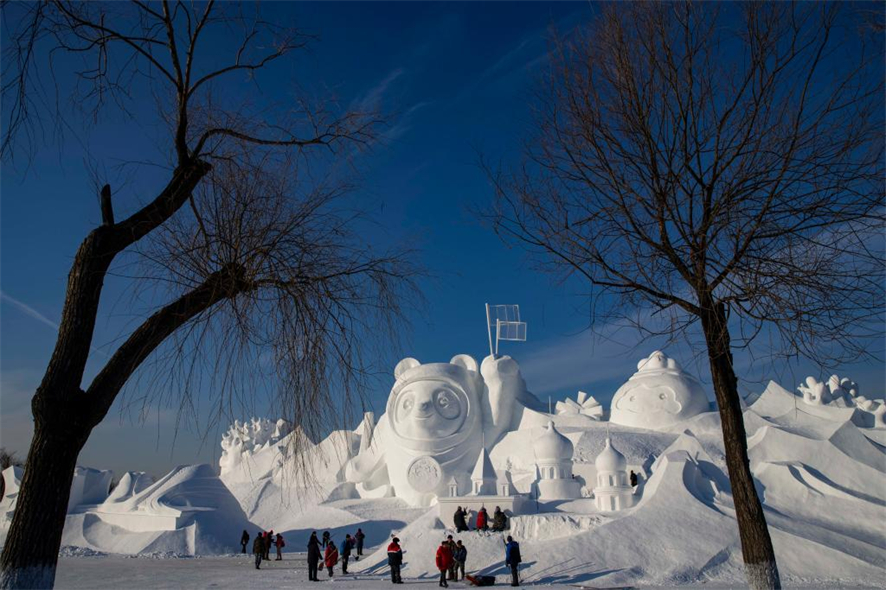 Venez découvrir la sculpture de neige des mascottes des JO d'hiver de Beijing à Harbin