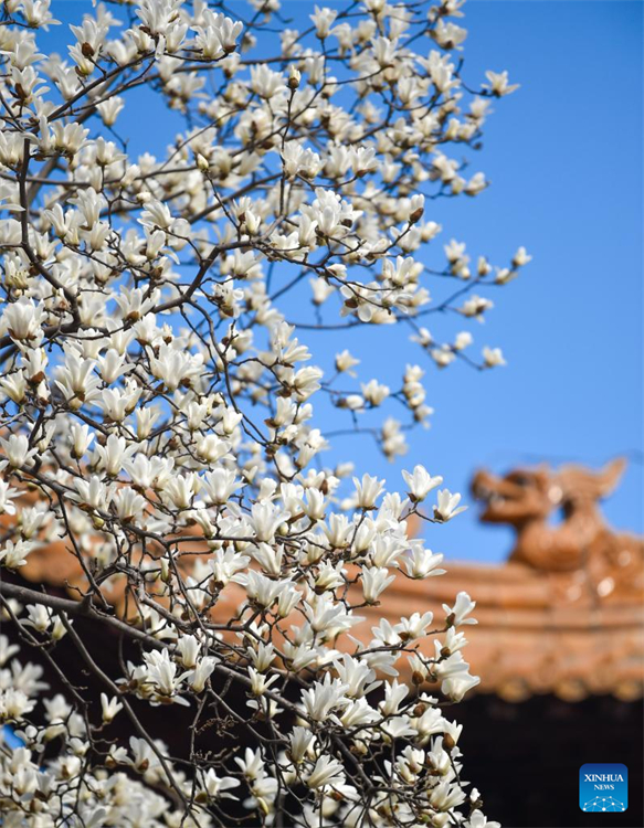 Des fleurs de magnolia en pleine floraison à Nanjing, capitale de la province du Jiangsu (est de la Chine), le 10 mars 2022. (Fang Dongxu / Xinhua)