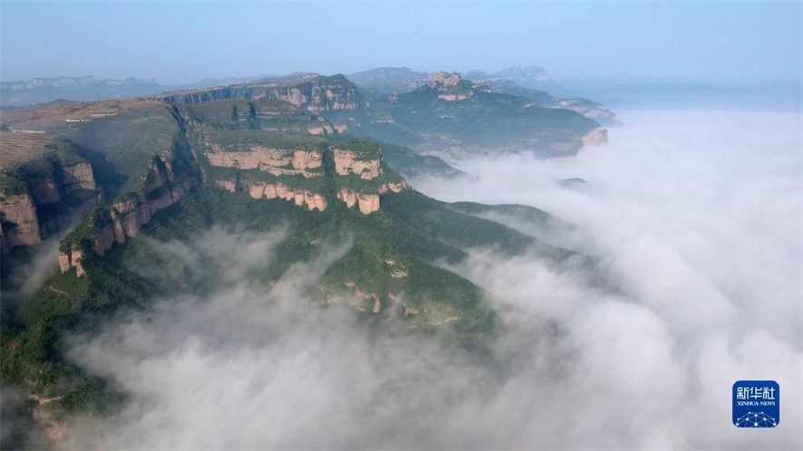 Après un épisode pluvieux, le mont Taihang, situé à l'ouest de la ville de Shahe, dans la province du Hebei (nord), a été couvert de nuages. Les montagnes, les villages et les champs en terrasses ont ainsi offert à la vue un paysage magnifique plongé dans une mer de nuages.