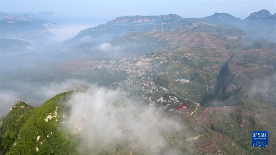 Après un épisode pluvieux, le mont Taihang, situé à l'ouest de la ville de Shahe, dans la province du Hebei (nord), a été couvert de nuages.