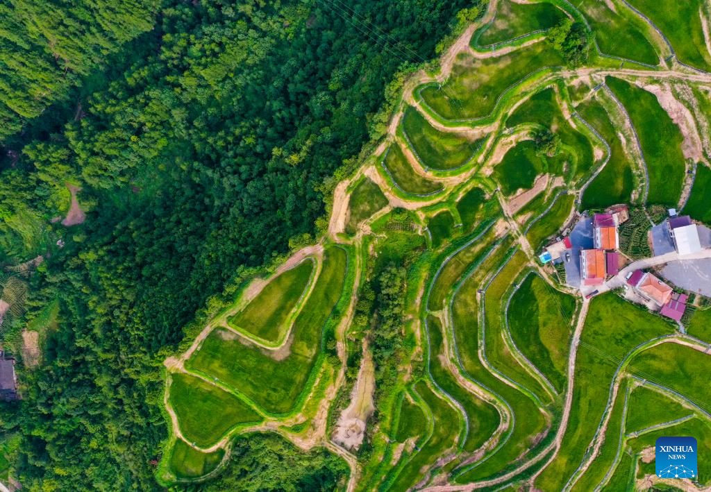 Photo aérienne prise le 2 août 2022 montrant une vue du village de Bayi, dans le district de Wanzhou à Chongqing (sud-ouest de la Chine).