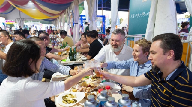 La cérémonie d’inauguration du 20e Festival international de la bière de Harbin s'est tenue le 16 août au site touristique de Taiyangdao, à Harbin, chef-lieu de la province du Heilongjiang (nord-est). De nombreux visiteurs y sont venus déguster de la bière et les saveurs caractéristiques locales. (Photos : Xie Jianfei/Xinhua)