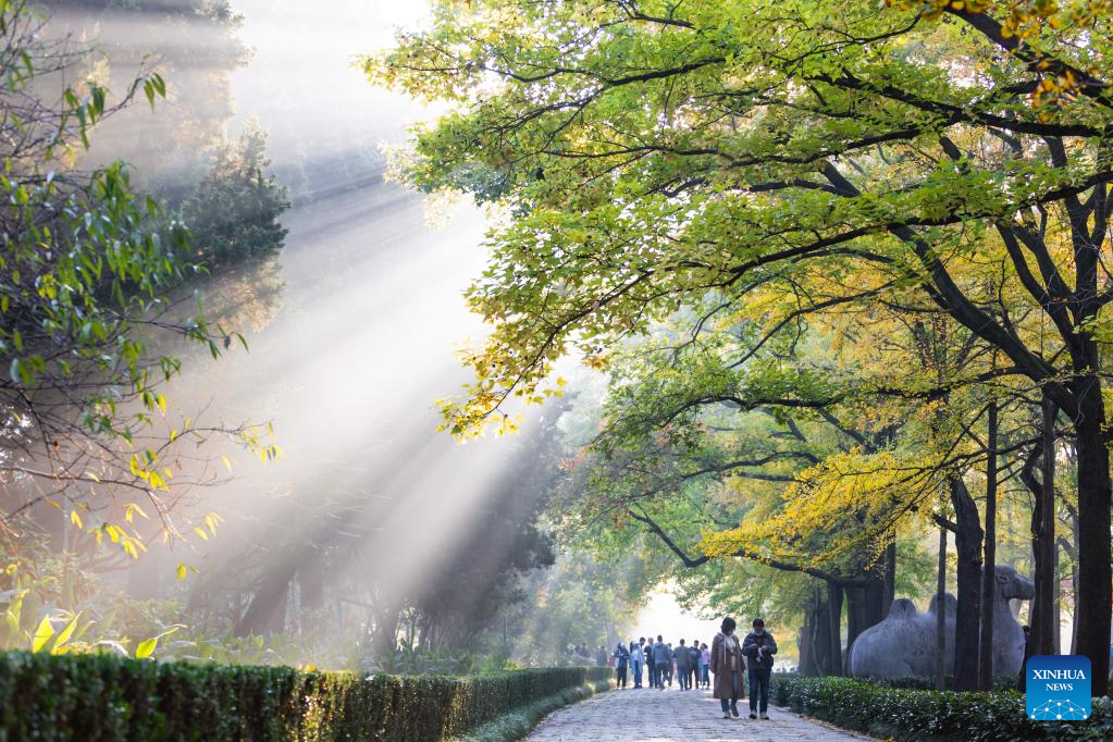 Des gens admirentun paysage d’automne à Nanjing, capitalede la province du Jiangsu (est de la Chine), le 22 octobre 2022.