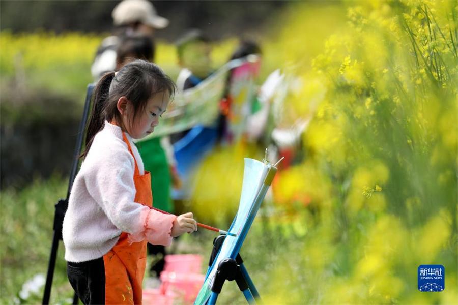 Hunan : les enfants découvrent les couleurs du printemps dans un champ de colza