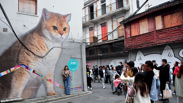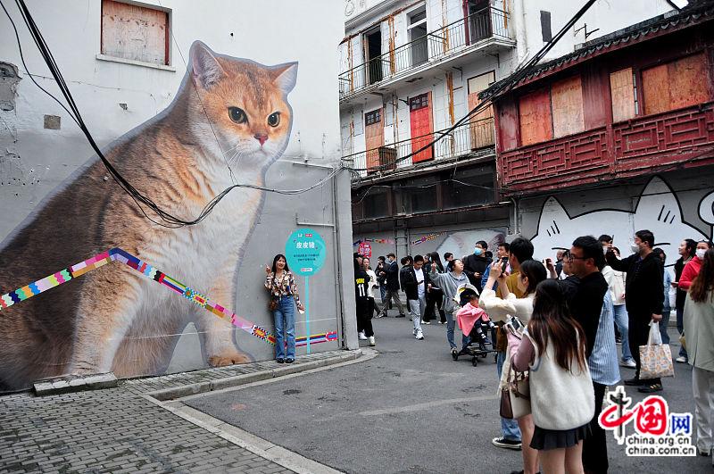 La rue Fangbinzhonglu a été ouverte aux visiteurs le 7 mai, à Shanghai. Grâce à des images géantes de chats peintes sur les murs, cette vieille rue située au district de Huangpu est devenue une attraction populaire pour les habitants et les touristes.