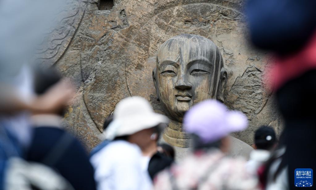Le site historique des grottes de Longmen est récemment entré dans sa haute saison touristique. De nombreux visiteurs internationaux y sont venus admirer les vielles statues de Bouddha en pierre.