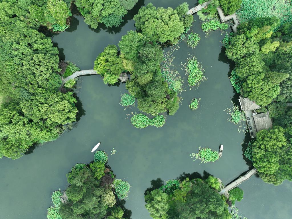 S’étendant sur une superficie d’environ 10 hectares, les lotus sur le Lac de l’Ouest sont entrés ces derniers jours dans leur période de floraison.