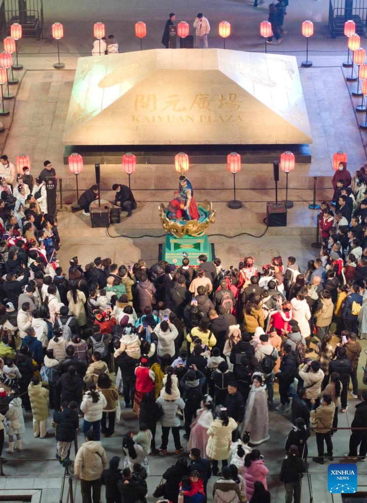 Shaanxi : la vieille capitale Xi'an se pare de lumières et de couleurs pour la fête du Printemps