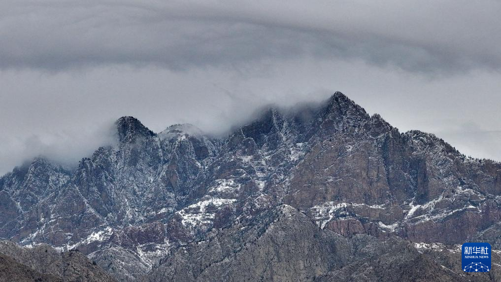 Photo prise par drone le 2 mars 2025, montrant une vue aérienne du site touristique du Parc forestier national Suyukou du mont Helan, situé à Yinchuan, chef-lieu de la région autonome Hui du Ningxia (nord-ouest). Après des chutes de neige, le mont Helan s'est retrouvé enveloppée d'un manteau blanc, offrant à la vue une splendeur exceptionnelle. (Wang Peng/Xinhua)