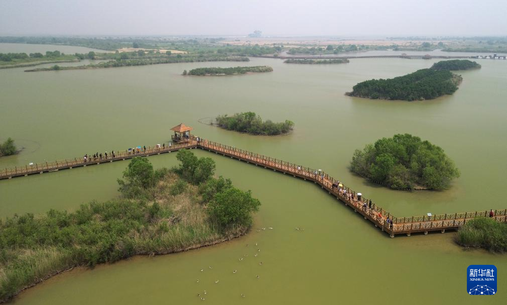 Au début de l'été, la Réserve naturelle nationale du delta du fleuve Jaune, située à Dongying, dans la province chinoise du Shandong (est), déborde de vitalité, offrant à la vue un paysage verdoyant.