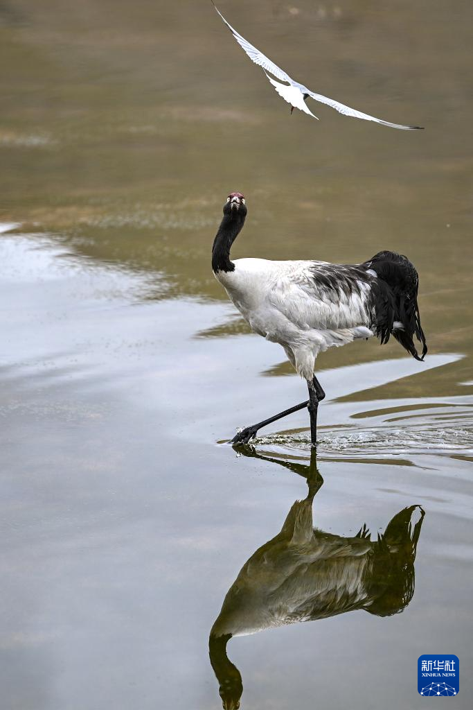 Xizang : hausse du nombre de grues à cou noir dans une zone humide de Nagqu
