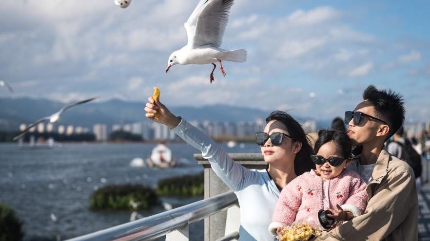 Chaque année au début de l'hiver, de nombreuses mouettes rieuses arrivent à Kunming, dans la province du Yunnan (sud-ouest), et les visiteurs viennent en nombre pour les admirer ou leur donner à manger, une scène harmonieuse entre humains et oiseaux qui dure depuis plus de 40 ans dans cette « ville printanière ».