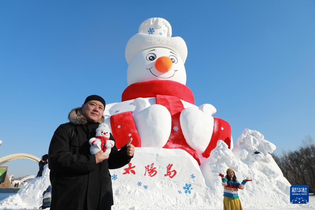 Un « bonhomme de neige » géant dévoilé à l'Exposition internationale de sculptures sur neige de l'île du Soleil, à Harbin