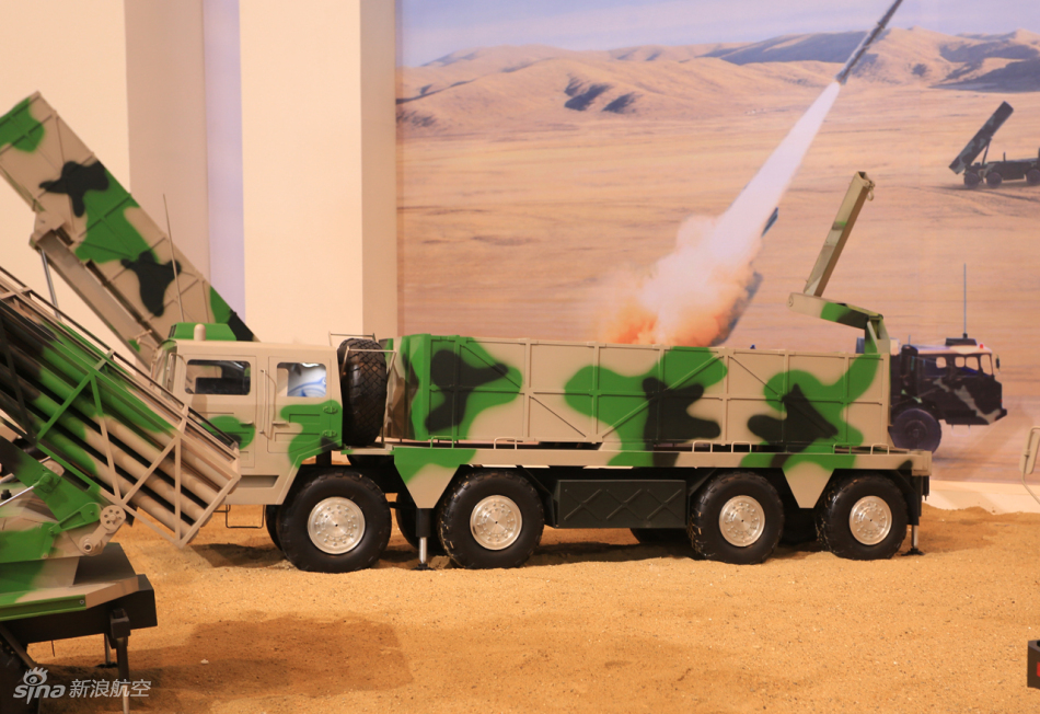 - Le groupe CASC expose les miniatures des composants du nouveau système d'attaque sol-sol chinois, dont le système de missile M20 et les roquettes des séries A et WS, dotées d'une portée de tir de 10 à 280 km.