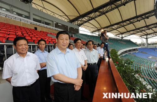 Le 15 juillet 2008, Xi Jinping visite les stades de football des JO de 2008.