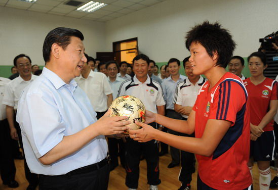 Xi Jinping rend visite à l'équipe féminine nationale de football.
